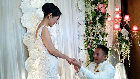 Namun, di hari berbahagianya ini, Vicky menyematkan sebuah cincin kepada Anggia.